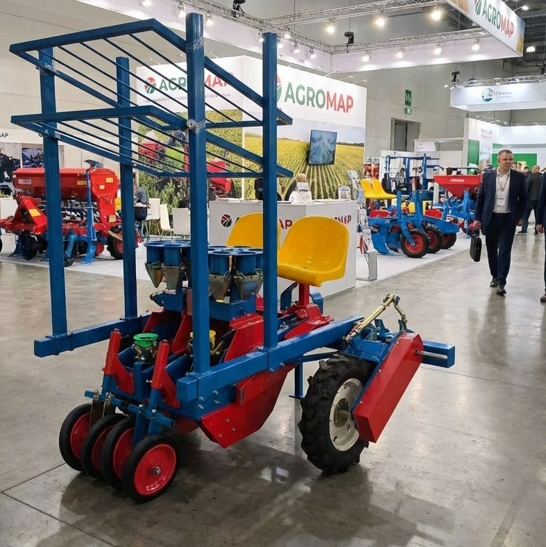 Рассадопосадочная машина используется для точной и равномерной высадки рассады овощных культур (бахчевые культуры, кукуруза, капуста, томаты, перец и др.) на подготовленных полях. Конструкция оснащена рабочим местом оператора с сиденьем, что обеспечивает контроль процесса посадки в реальном времени. Рассадопосадочная машина модульного типа. Количество секций устанавливается в зависимости от требования заказчика и поставленной задачи по высадке рассады.